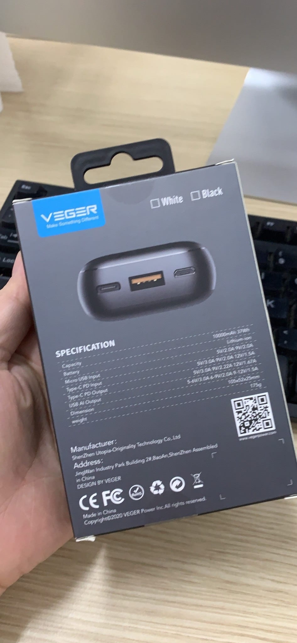 Pin sạc dự phòng Veger – 10,000mah siêu nhỏ – sạc nhanh