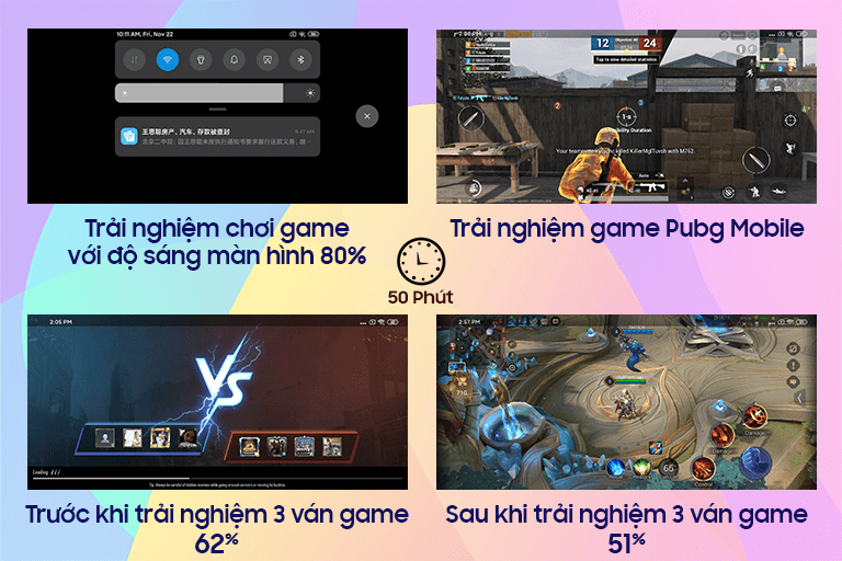– Độ sáng 80%, mức âm lượng 40% và sử dụng bằng wifi: trải nghiệm 3 ván game mobile thịnh hành.