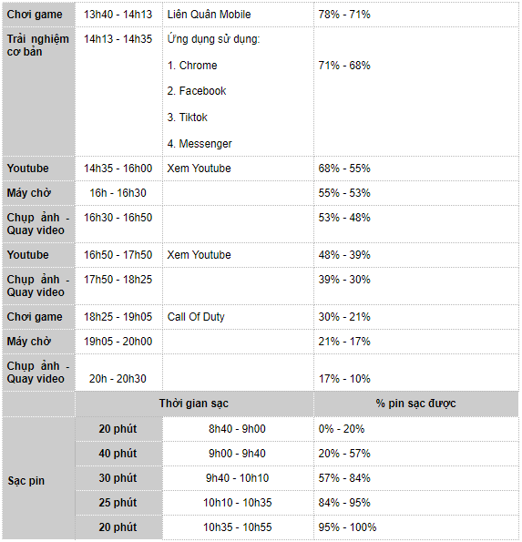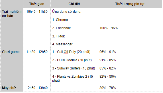 Cơ sở để đánh giá khách quan nhất về viên pin Li-Po trên Galaxy A11 nói riêng và bất kỳ chi tiết cấu hình nào khác nói chung là dựa trên thực nghiệm. Dưới đây, Di Động Thông Minh tổng kết cụ thể các kết quả trải nghiệm cùng Samsung A11 trong điều kiện: