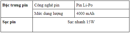 Tiếp đó là dung lượng pin 4000mAh. Đây được ngầm hiểu là định mức tiêu chuẩn trên các smartphone thông thường, cho phép duy trì hoạt động của máy trọn ngày dài với các tác vụ cơ bản, đảm bảo để người dùng không bị gián đoạn liên lạc trong suốt quá trình làm việc, học tập mỗi ngày. Đây cũng được xem là mức pin hợp lý cho người dùng vì không ai có thể 24/24 sử dụng điện thoại của mình liên tục. Vậy nên, bạn không cần phải lo lắng điều gì với chiếc smartphone này. Hơn thế, hãng đã rất biết cách lấy lòng người dùng khi thiết kế sạc nhanh công suất 15W theo kèm, giúp người dùng tiết kiệm tối đa thời gian sạc.