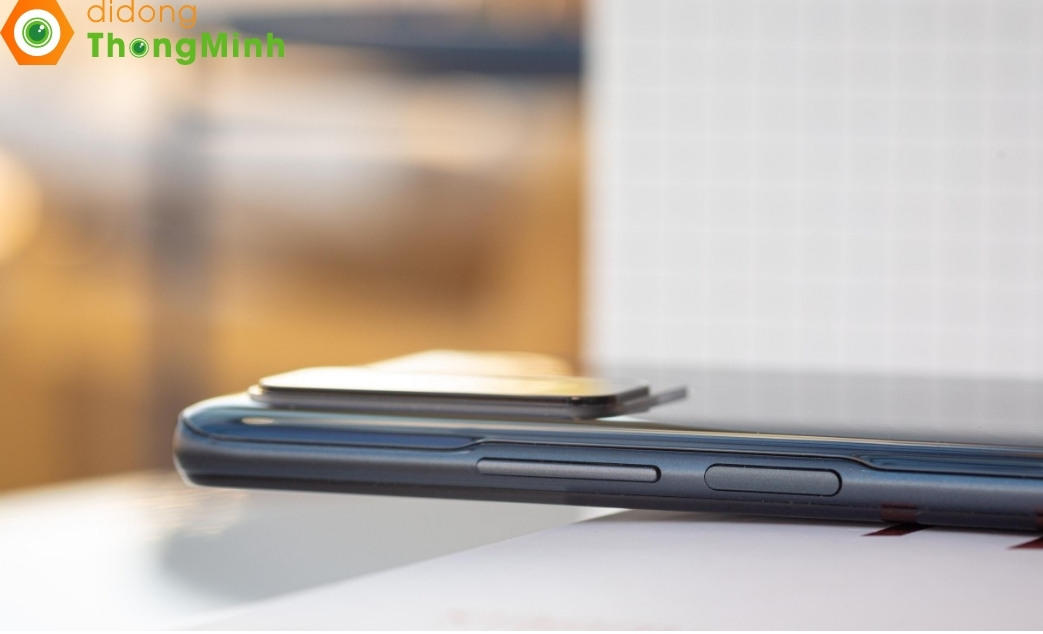 Cảm biến vân tay tích hợp liền với nút nguồn giúp mở khoá dễ dàng, điều mình thất vọng trên thiết kế của em này là nó chỉ có khả năng kháng nước IP53, trong khi chúng ta bỏ ra số tiền 15 triệu cũng không hề nhỏ. Nhìn sang Galaxy A52s 5G, A72 của samsung chỉ 9 triệu đã có khả năng kháng nước Ip67.