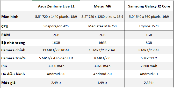 Nhìn qua một chút các sản phẩm cùng tầm giá, chúng ta sẽ có Meizu M6 chính hãng hay Galaxy J2 Core chính hãng. Tuy nhiên, những sản phẩm này đều không thể so sánh được với Asus Zenfone Live L1.