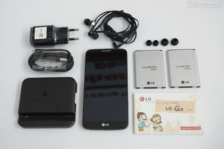 Như vậy phiên bản LG G2 quốc tế mặc dù chưa được bạn chính thức, nhưng phiên bản dành cho thị trường nội địa Hàn đã được thương mại hóa với phụ kiện chuẩn đi kèm theo máy gồm: Sạc, cable, tai nghe Quadbeat + Nút đệm, 2 Pin, Dock sạc.