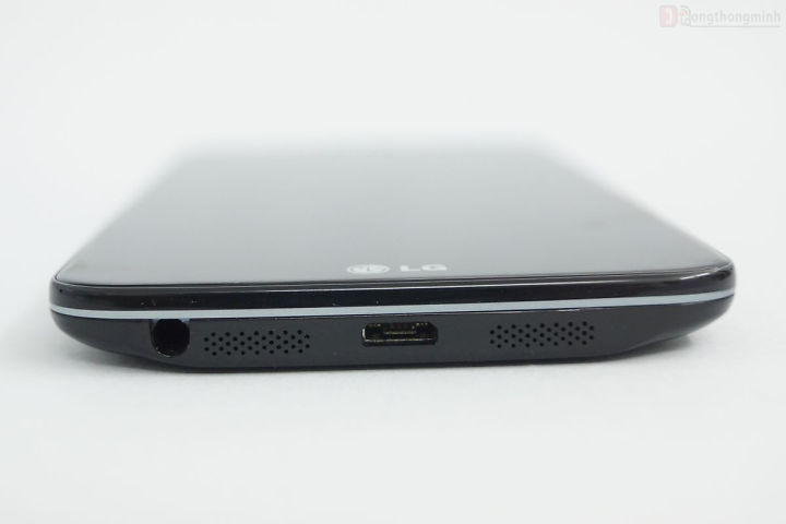 Cạnh dưới chúng ta có cổng kết nối Micro USB, 1 cổng kết nối tai nghe 3.5mm và loa ngoài. Các bạn có thể dễ dàng nhìn thấy loa ngoài của G2 được thiết kế với 2 kênh riêng biệt tuy nhiên nếu tháo nắp lưng ra các bạn sẽ thấy nó vẫn chỉ là 1 loa duy nhất mà thôi.