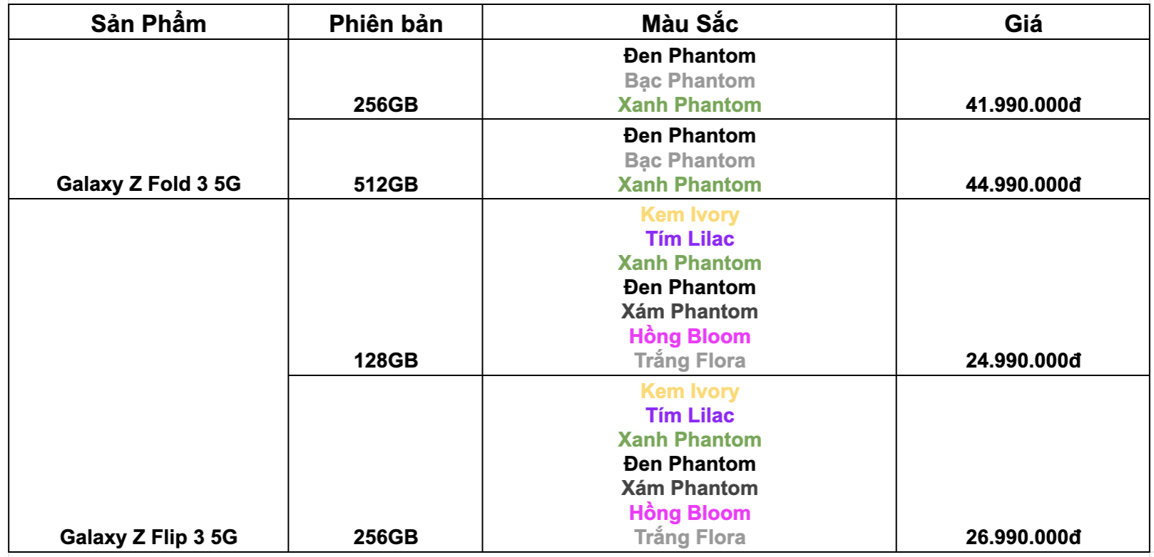 Ra mắt chính thức vào ngày 11/08, dưới đây là giá bán dự kiến của Galaxy Z Fold 3 và Galaxy Z Flip 3 tại thị trường Việt Nam