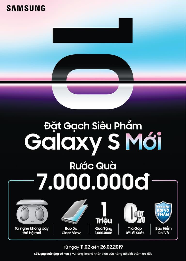 – Thời gian đặt hàng Galaxy S10 : 11/2/2019 – 26/2/2019