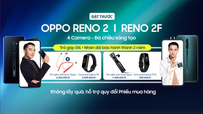 Đúng như dự đoán, Oppo năm nay đã bỏ hẳn dòng F-Series để tập trung vào dòng Reno ở phân khúc cao hơn. Hai model Reno 2 và Reno 2F vừa được giới thiệu ở thị trường Việt Nam là minh chứng rõ ràng nhất. Với những cải tiến vượt trội, Oppo Reno 2 và Reno 2F hứa hẹn sẽ bùng nổ trong thời điểm mua sắm cuối năm. Ngay từ bây giờ, các bạn đã có thể đặt hàng Oppo Reno 2 và Reno 2F tại DDTM để nhận bộ quà tặng lên tới 5 triệu đồng.