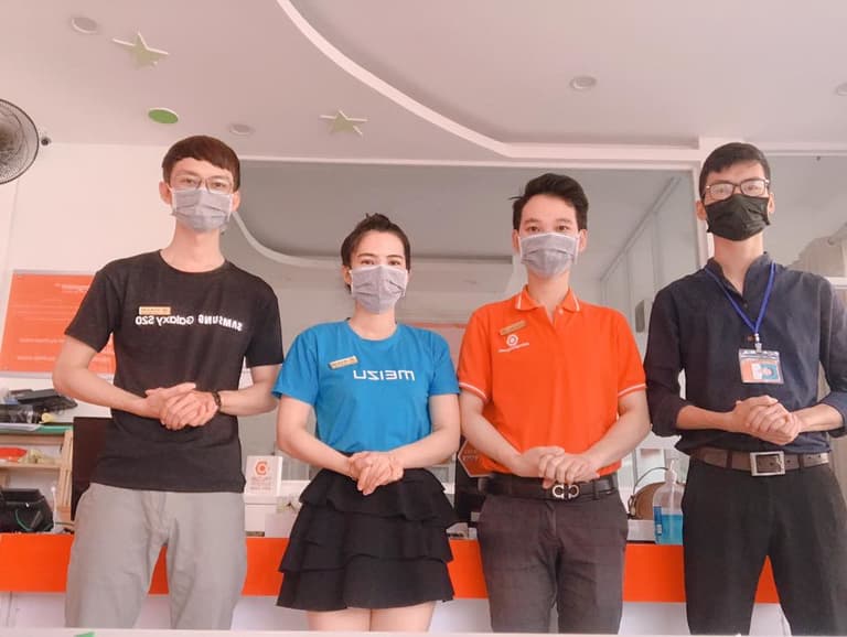 - Tủ, quầy, các tay nắm cửa ở khu vực ra vào đều được lau dọn, vệ sinh sạch sẽ, đặc biệt là smartphone trước khi giao tới tay khách hàng