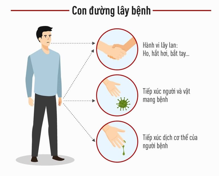 - Lây trực tiếp khi tiếp xúc với người bệnh như bắt tay.
