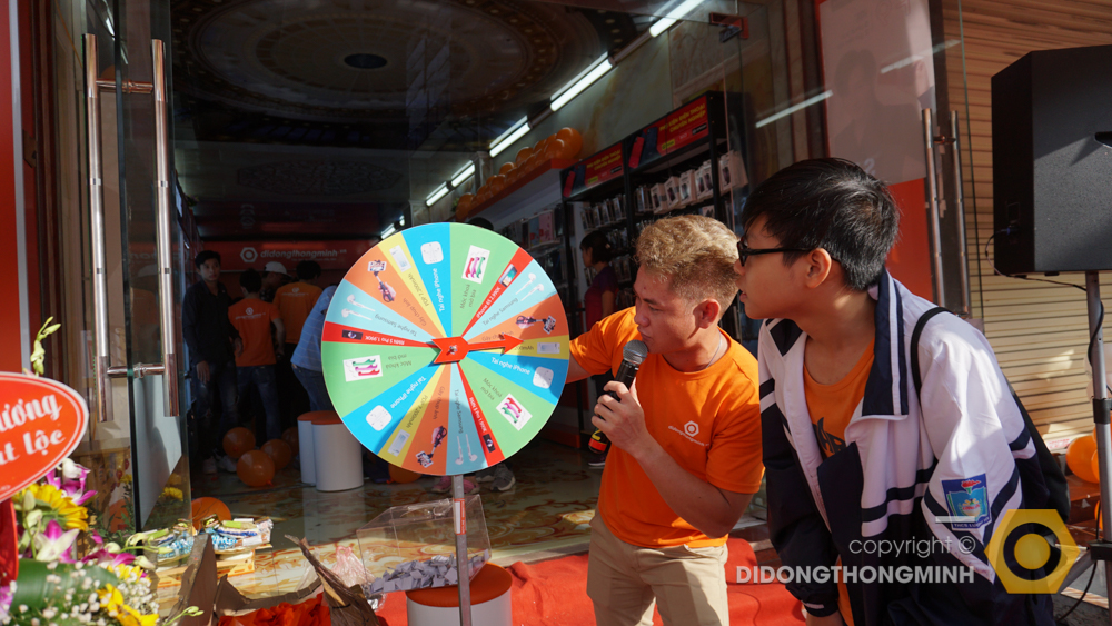 Bên cạnh sự kiện khai trương showroom mới, Di Động Thông Minh còn tổ chức trò chơi vòng quay kì diệu vô cùng hấp dẫn. Phần thưởng giá trị nhất chính là 3 suất mua chiếc iPhone 6s quốc tế với giá chỉ 2.99 triệu đồng trong khi giá niêm yết là 4.79 triệu đồng và 15 suất mua Xiaomi Redmi Note 5 Pro với giá chỉ 1.99 Triệu đồng