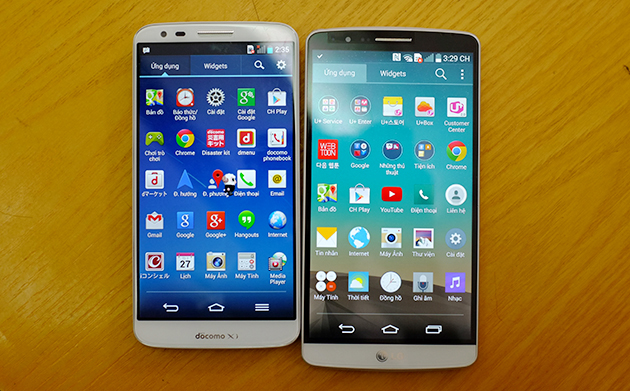 LG G3 được trang bị màn hình 5,5″ lớn hơn 0,3″ so với G2, đồng thời cũng được nâng cấp từ FullHD lên 2K, 1440 x 2560 pixel. Chắc chắn rằng với kích thước lớn, màn hình 2K có độ phân giải gấp đôi FullHD sẽ mang tới những trải nghiệm tuyệt vời hơn. Bạn có thể nhận ra sự khác biệt khi để ý viền của các icon hoặc các dòng chữ.