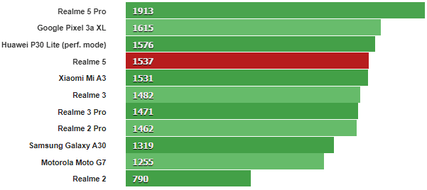Như vậy, xét về phương diện hiệu năng, Realme 5 được cải tiến mạnh mẽ với chip Snapdragon 665, đạt được điểm số rất ấn tượng trên Antutu và GeekBench, cho bạn thỏa sức trải nghiệm các tác vụ một cách mượt mà, trơn tru. Đây là chiếc smartphone xứng tầm phân khúc, đáng mua trong tầm giá.