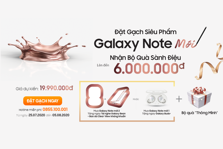 Khách hàng đặt trước Samsung Note 20 mới sẽ nhận được bộ quà tặng trị giá 10 triệu, gồm: