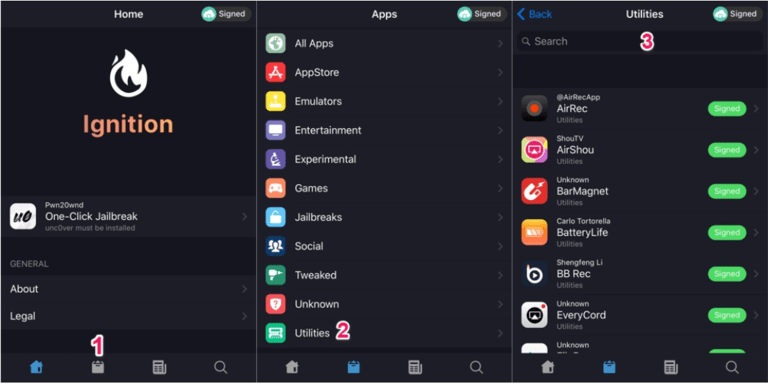 Trong giao diện chính của Ignition, bạn nhấn vào “Biểu tượng thư mục” để chuyển sang trang Ứng dụng (Apps) > chọn mục “Tiện ích (Utilities)”.