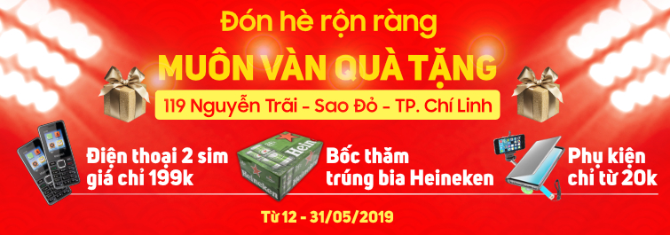 Nhằm tri ân khách hàng đã ủng hộ Showroom 32 Thái Học 2, Sao Đỏ, đồng thời mừng thành phố Chí Linh, Di Động Thông Minh xin gửi tới các bạn chương trình khuyến mại: “Đón hè rộn ràng, muôn ngàn quà tặng” được diễn ra từ /12/5 – 31/5/2019, nơi các bạn có thể sở hữu: