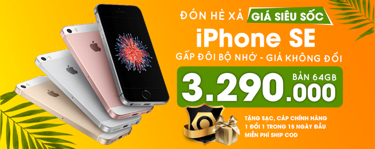 Hiện tại giá bán của iPhone SE chỉ còn 2.750.000vnđ với tùy chọn 16GB bộ nhớ trong. Ngoài ra các bạn cũng có thể tham khảo những phiên bản 32/64GB cao hơn với mức giá chênh lệch chỉ vài trăm ngàn đồng. Đặc biệt với CTKM đồng giá, chỉ với hơn 3 triệu bạn đã có thể sở hữu ngay iPhone SE 64GB cho không gian lưu trữ thoải mái.