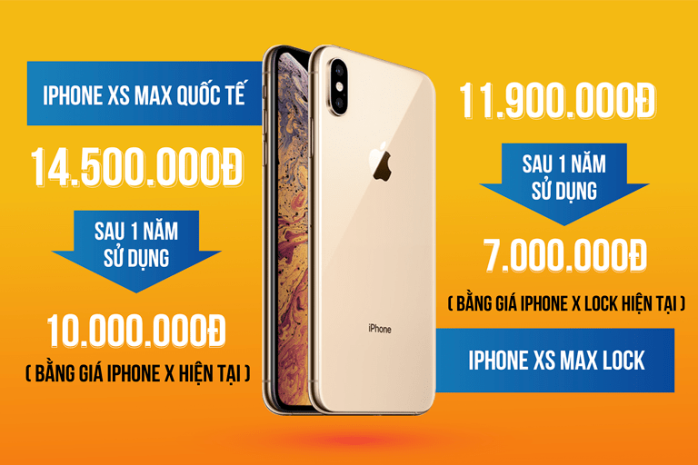 Như đã phân tích ở trên, hàng lock là sản phẩm giá rẻ nên được nhiều người dùng quan tâm. Tuy nhiên, tưởng rẻ lại chưa chắc đã rẻ. Chúng ta hãy tham khảo một phép toán so sánh giá giữa iPhone Xs Max hình thức máy lock và quốc tế dưới đây để minh chứng.