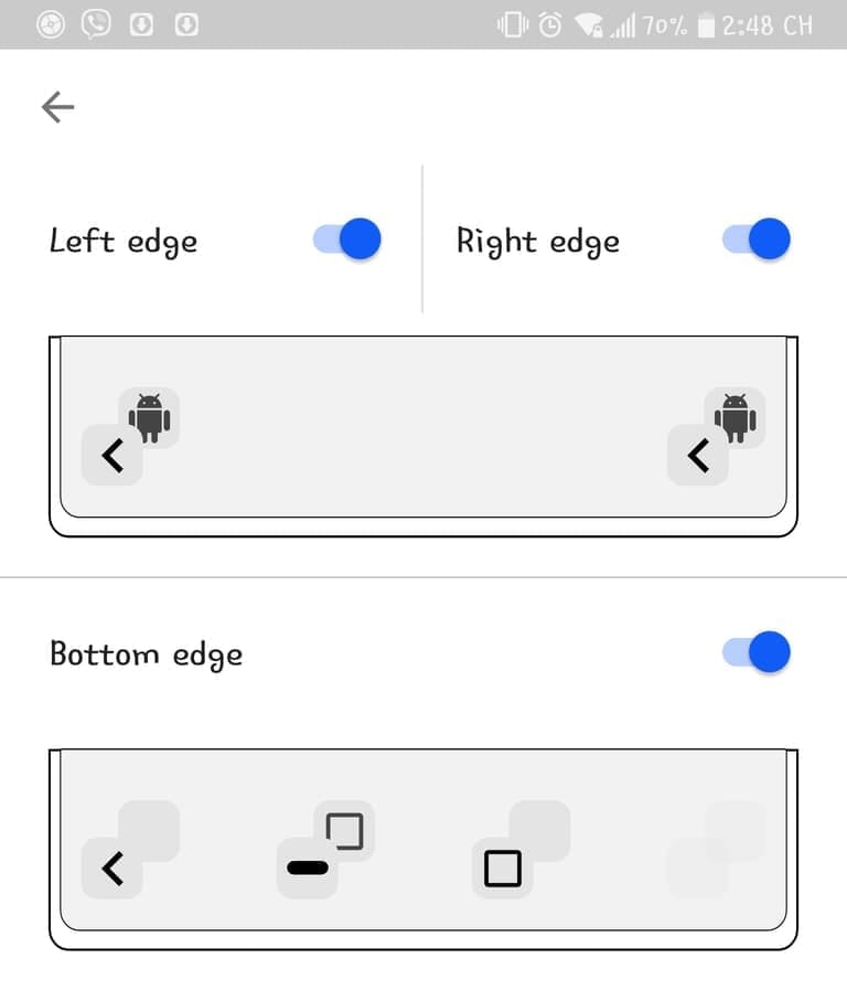 Bottom Edge : Cho tùy chỉnh thao tác từ cạnh dưới màn hình trái, giữa và phải.