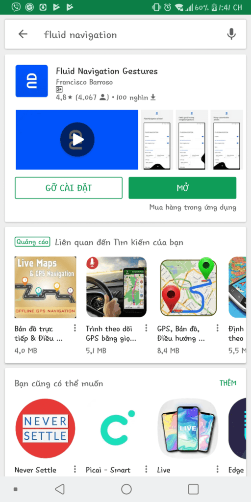Đầu tiên tải ứng dụng Fluid Navigation trên CH Play.