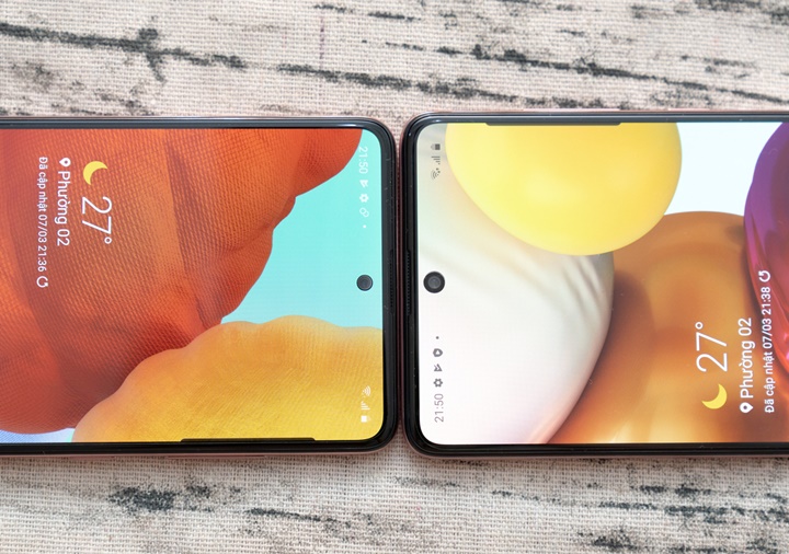 Cả hai model cùng có camera trước độ phân giải 32 megapixel, tuy nhiên, kích thước của “nốt ruồi” trên Galaxy A71 lớn hơn nhiều so với Samsung A51