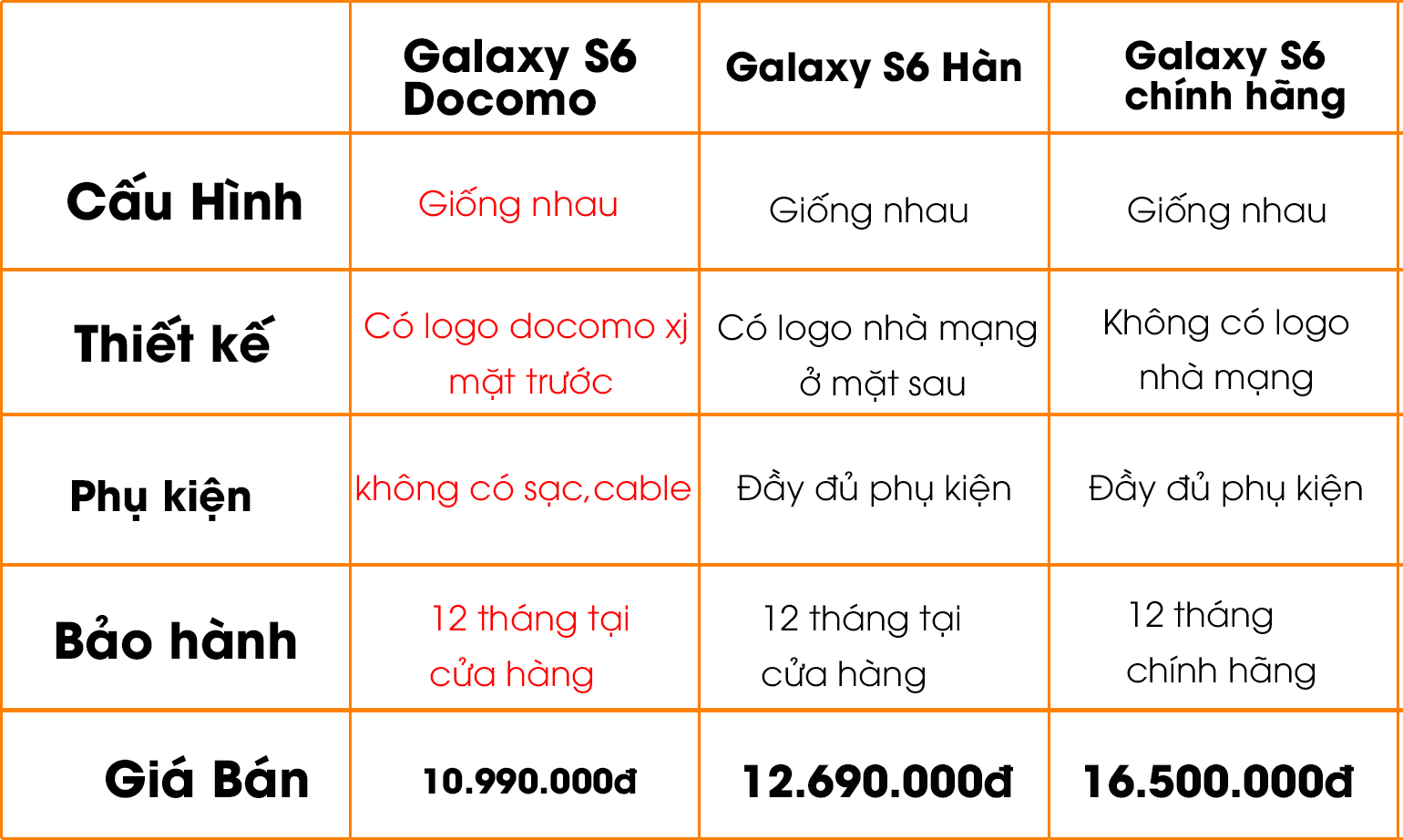 - Khác biệt giữa Galaxy S6 docomo vs S6 Hàn, S6 Chính hãng