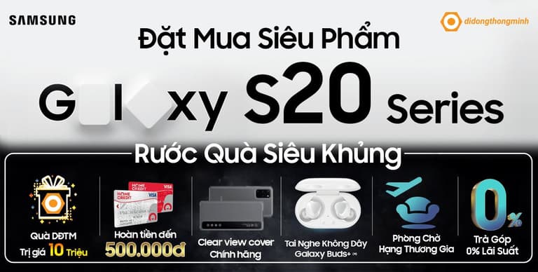 Nếu không có cơ hội sở hữu Galaxy Fold và Z Flip, chúng ta có thể tham khảo sang series S20 cũng cao cấp không kém. Bạn nào đang quan tâm đến bộ 3 seires S20 Samsung mới ra mắt có thể đặt hàng tại website DĐTM để nhận được bộ quà lên tới 20 triệu đồng.