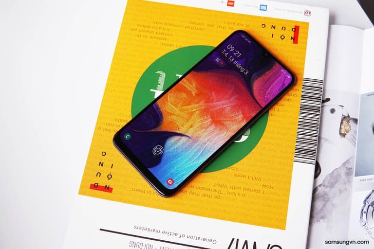 Giá Samsung A50 hơn 6 triệu đồng, đây chính là chiếc smartphone trong phân khúc tầm trung duy nhất trên thị trường sở hữu công nghệ cảm biến vân tay trong màn hình vốn chỉ có trên những dòng điện thoại cao cấp .