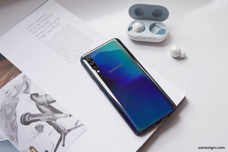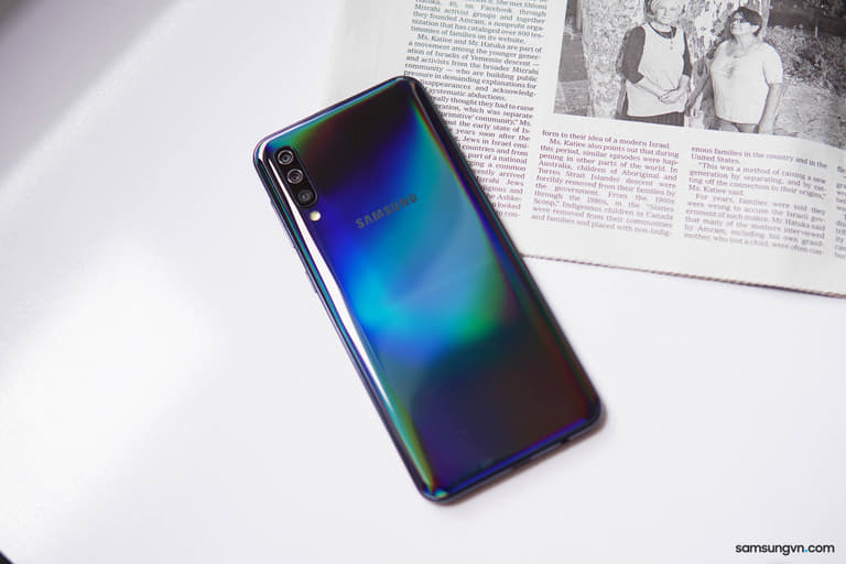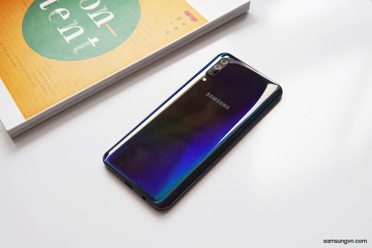 Mặt lưng của Galaxy A50 rất ấn tượng với khả năng đổi màu