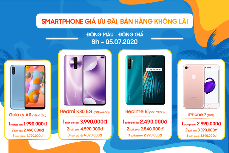 Chương trình tri ân khách hàng, tặng quà Vip tới 1.500.000đ khi mua các sản phẩm điện thoại/máy tính bảng diễn ra duy nhất ngày 05/7/2020 tại Di Động Thông Minh 441 Nguyễn Văn Cừ, Long Biên, Hà Nội. Khuyến mãi này được áp dụng chung với khuyến mãi 3 (bên dưới) và không áp dụng chung với khuyến mãi các sản phẩm “Xả kho giá siêu rẻ” (bên trên). Theo đó: