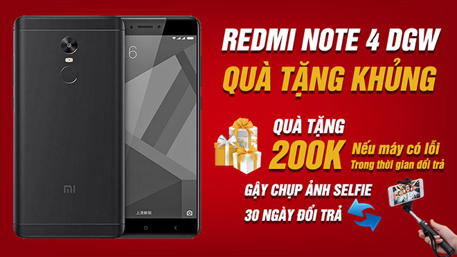 Theo đó, khi mua Xiaomi Redmi Note 4 chính hãng DGW 64Gb Ram 4Gb trong dịp này, khách hàng sẽ được khuyến mãi với giá 4.090.000vnđ