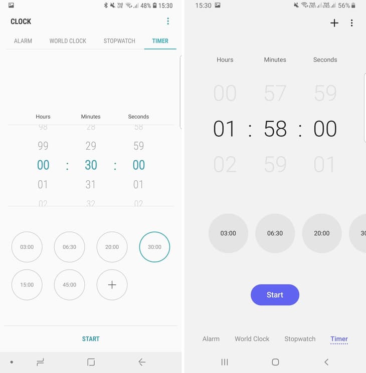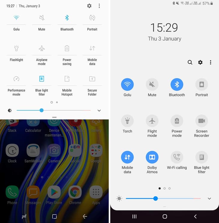 Và bây giờ mời bạn xem nhanh loạt hình ảnh so sánh trực tiếp giữa Giao diện SE 9 cũ (trái) và One UI mới nhất (phải).