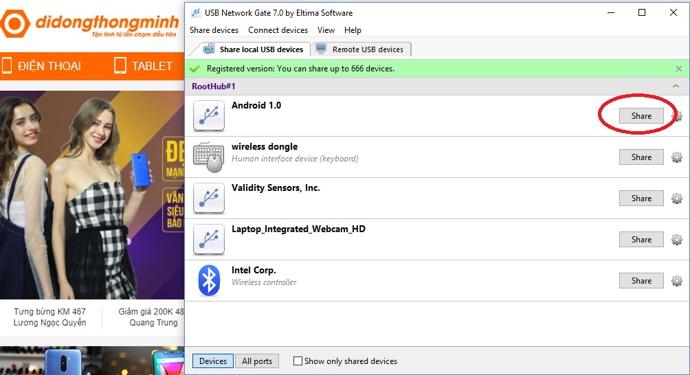 3. Download and Install USB NetWork Gate, link HERE, then opne Config USB Network Gate. tick Trial ->Share port Android 1.0