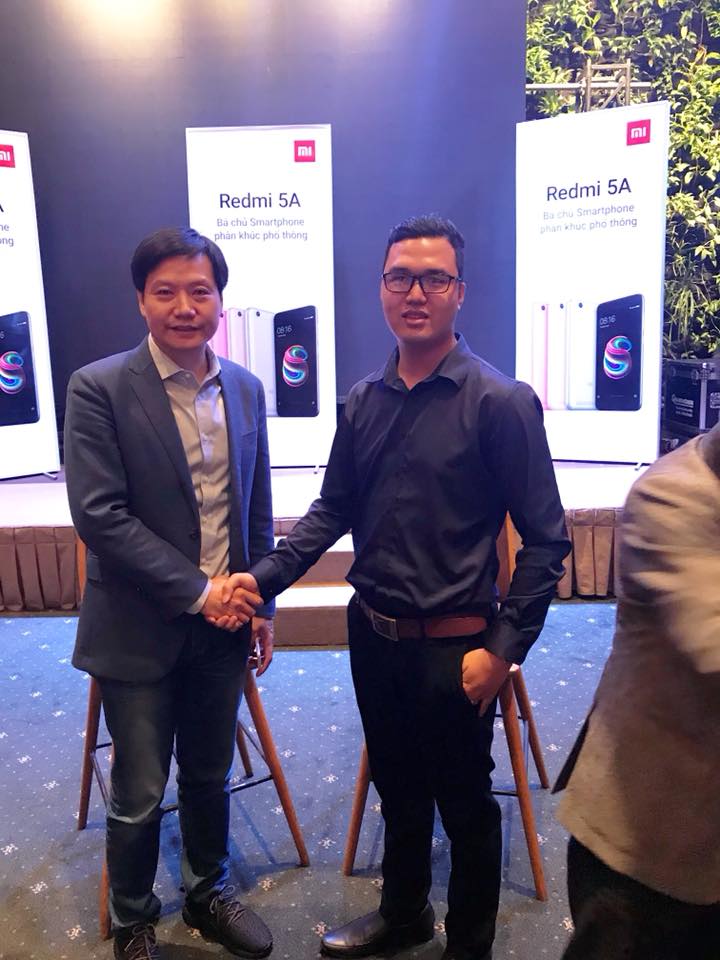 Di Động Thông Minh là đối tác chiến lược của Xiaomi chính hãng (ảnh CEO Lei Jun bắt tay Giám đốc DDTM tại lễ giới thiệu Redmi 5A)