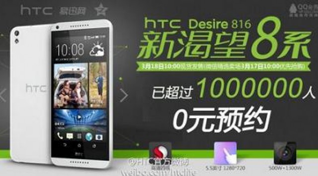 Với cấu hình tốt, thiết kế đẹp cùng mức giá vô cùng hợp lý, Desire 816 của HTC đang trở thành một món hàng hot tại các thị trường mà nó đặt chân tới. Đặc biệt vừa qua, theo thông tin từ Trung Quốc thì siêu phẩm này đã cán mức gần 1triệu đơn đặt hàng.