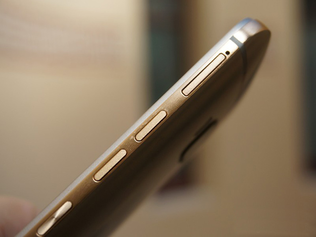 Có thể thấy là máy có khá nhiều điểm tương đồng với người tiền nhiệm. Đầu tiên là toàn bộ phần khung vỏ kim loại nguyên khối sang trọng được phay xước, mặt sau cong đều về 2 bên cho cảm giác cầm trên tay thoải mái, mát tay và khá dễ chịu. Nhưng thiết kế của One M9 trông khá ấn tượng hơn với khung viền kim loại mạ vàng sành điệu và nổi bật . Phần viền máy được cắt kim loại khá sắc, không bo tròn như M8. Trên M9 màn hình đã được làm tách biệt hơi nhô lên cao khác hẳn với so với M8, viền kim loại sẽ bao trọn lấy cả phần màn hình.