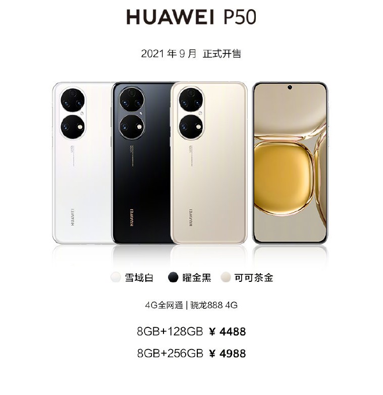 Phiên bản P50 được trang bị chip Snapdragon 888 và cũng chỉ hỗ trợ 4G. Model này có Ram 8GB và bộ nhớ trong 128/256GB, có hỗ trợ cắm thẻ nhớ ngoài. Theo máy sẽ là viên pin 4100 cùng công nghệ sạc giống P50 Pro. Cả 2 phiên bản đều chạy hệ điều hành HamonyOS 2.0 của Huawei. Bộ đôi này đều có loa stereo, khả năng kháng nước, chống bụi đạt tiêu chuẩn IP68.