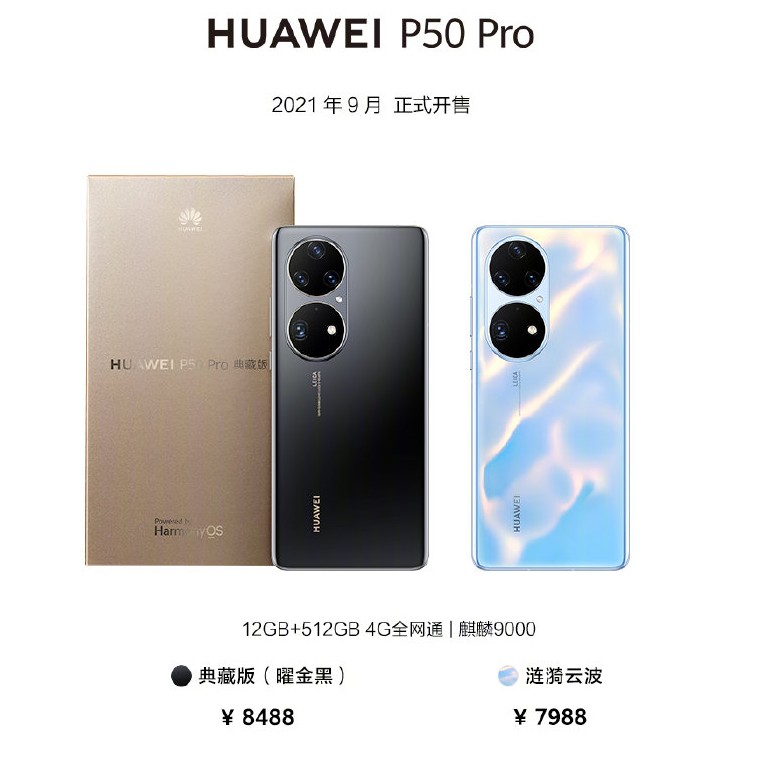 Ngày mai người dùng đã có thể đặt hàng P50 Pro, và hãng sẽ trả hàng vào ngày /12/08. Máy sẽ có mức giá khởi điểm 5,988 nhân dân tệ (khoảng 21.3 triệu đồng). Còn Huawei P50 có giá bắt đầu từ 4,488 nhân dân tệ (khoảng 15.96 triệu đồng), cũng với 8GB RAM và 128GB dung lượng lưu trữ. Nó sẽ lên kệ muộn hơn, vào tháng 9 tới.