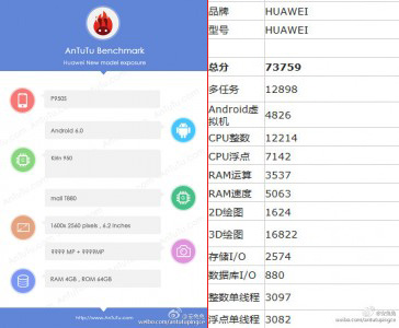 Huawei P9 Max dùng Chip Kirin 950, Màn 6,2inch Quad HD rò rỉ hình ảnh Antutu gần 74k điểm - Di Động Thông Minh