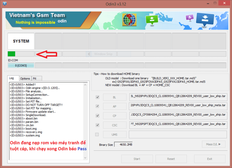 – Trong khi Odin chạy tuyệt đối không được động vào cáp USB tránh trường hợp tuột cáp gây lỗi hoặc brick máy, khi máy chạy xong Odin sẽ báo reset và máy khởi động lại lúc này có thể rút cáp USB ra.