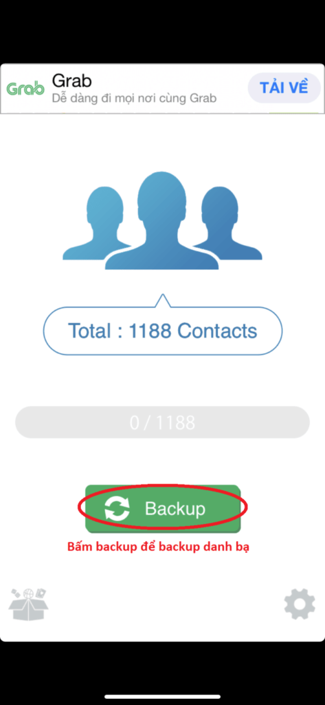 - Bấm vào Backup để tiến hành backup (sao lưu) danh bạ