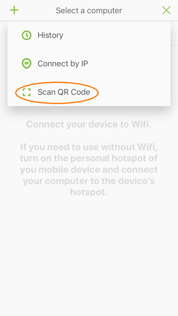 Bước 2 : Lấy smartphone của bạn truy cập vào ứng dụng Remotemouse chọn Scan QR Code và đưa Camera quét Code trên màn hình máy tính
