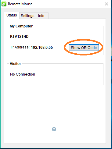 Bước 1 : Mở remotemouse trên PC lên sẽ ra giao diện như hình sau đó click vào show QR code