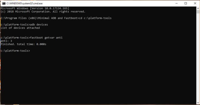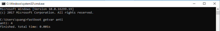 - Lúc đó dòng lệnh sẽ báo cho các bạn biết là máy đang ở rom có anti-rollback là version 3 hay 4