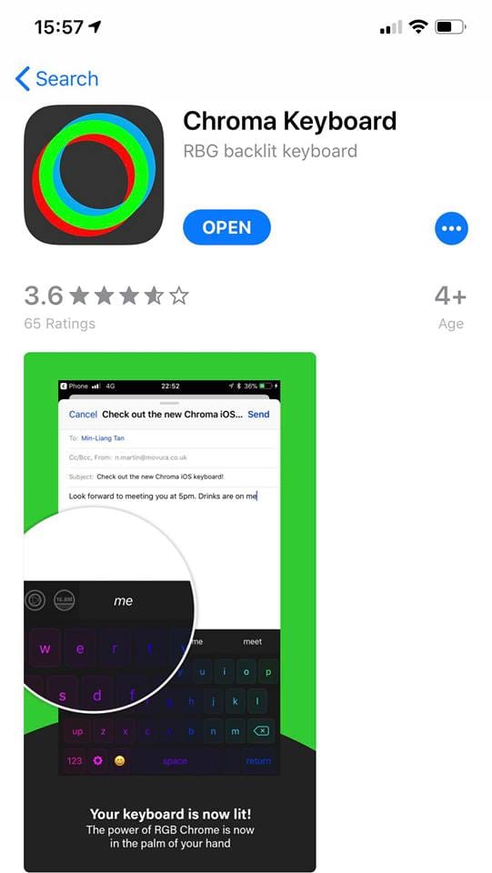 Bước 1: Đầu tiên, các bạn tải về ứng dụng Chroma Keyboard trên App Store