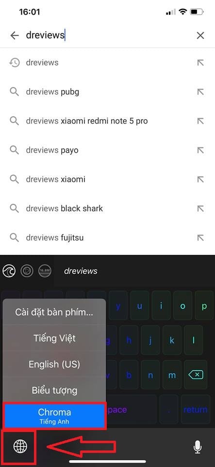 Bước 4: Giờ mở ứng dụng tin nhắn hoặc bất cứ ứng dụng nào cần dùng bàn phím. Sau đó giữ vào biểu tượng quả địa cầu ở góc dưới bên trái màn hình > Chọn bàn phím “Chrome”. Giờ bàn phím đã đổi giao diện sang đèn LED chuyển màu rất đẹp mắt.