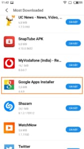 + Tiếp theo các bạn kéo xuống bên dưới và chọn cài đặt Google Apps Installer (như hình)