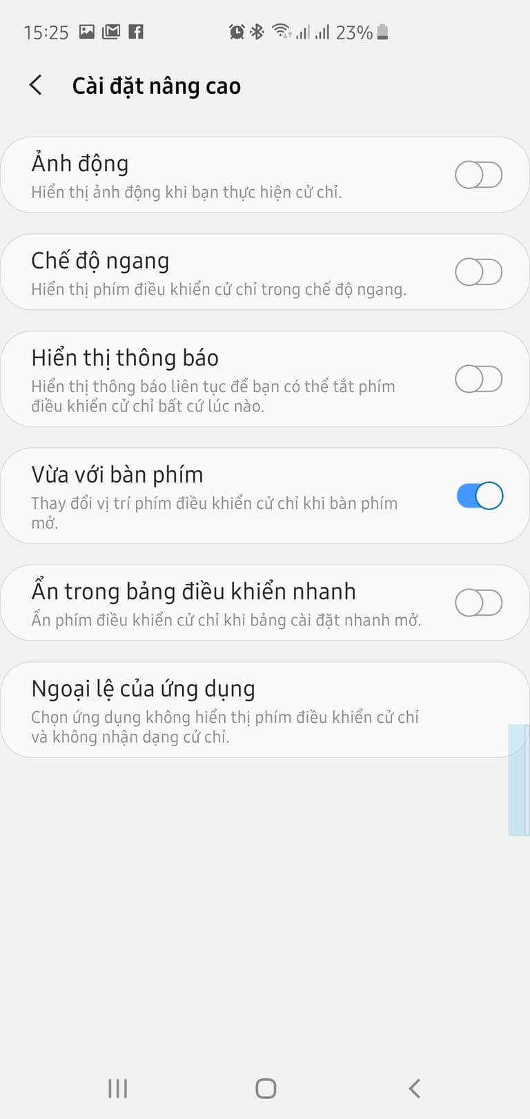 Ngoại lệ ứng dụng: Chọn các ứng dụng sẽ không cho phép vùng cảm ứng xuất hiện, ví dụ như các game bạn chơi không muốn vuốt nhầm chẳng hạn