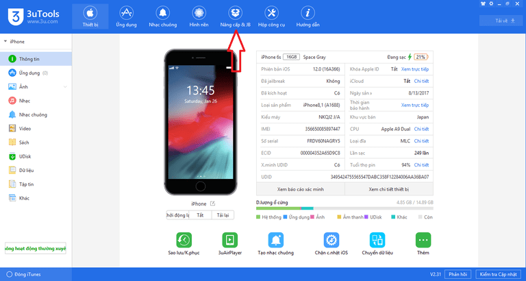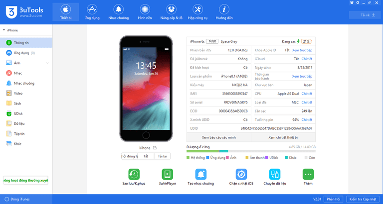 B1: Kết nối điện thoại với máy tính bằng phần mềm 3uTools