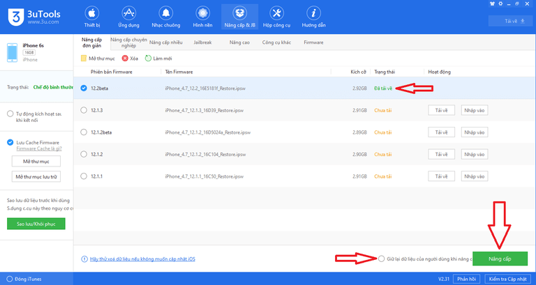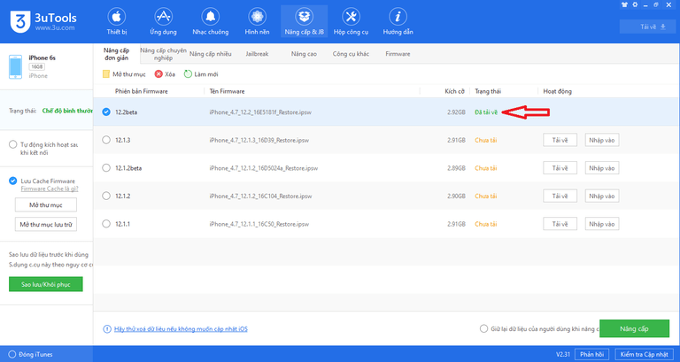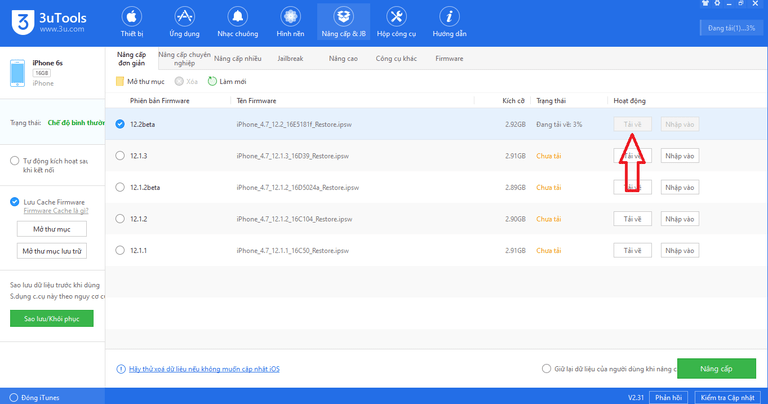 B3: Tại mục “Phiên bản Firmware” bạn tick chọn vào muc đầu tiên “12.2beta”, sau đó chọn mục “Tải về” để tiến hành download về máy