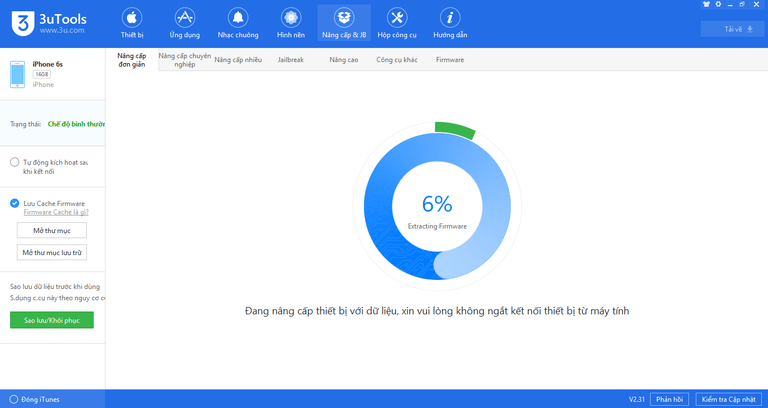 3uTools sẽ tiến hành Flash Firmware vào máy của bạn, tầm khoản 20 phút